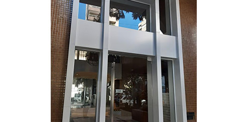 Esquadrias de alumínio, vidros temperados, ACM e Pele de vidro.